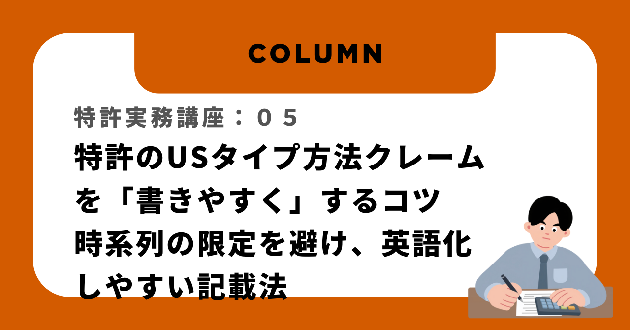 方法クレームは、発明の「手順」や「工程」を対象とするものであり、構造物や組成物とは異なる視点で記載する必要があります。今回は、USタイプの方法クレームに対する実施例の書き方を、実務的な観点から解説します。